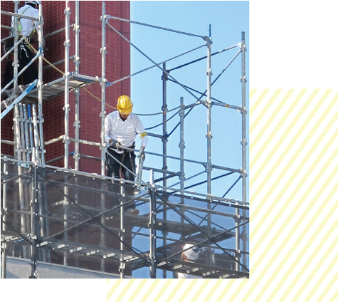 工事の現場で仕事をする技術者が安全に効率的に作業をするための足場を鋼管で組み上げる仕事です。